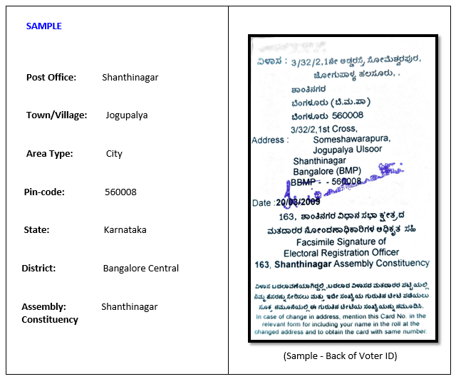 - Pincode,District,Postoffice(Refer to a neighbours voter id to get this information).
