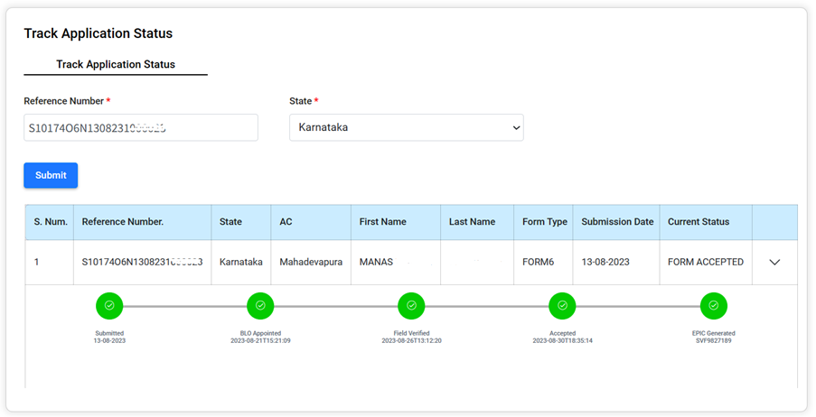 Visit https://voters.eci.gov.in/ and then click on Track Application Status
